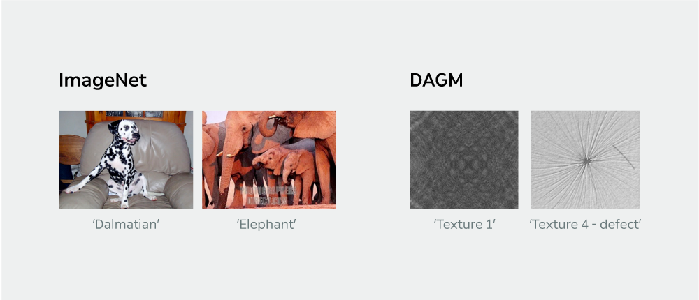 Since 2014, transfer learning has been widely applied in CNN research. However, in most of such research, the source domain and target domain were set as datasets with the same characteristics. Yet, the industry that SAIGE is focusing on is manufacturing. Using the DAGM dataset22, we compared how different the images in the manufacturing domain are from the images in ImageNet, which is mainly used in academia.
